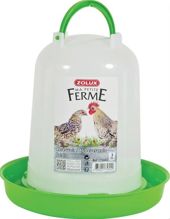 Optez pour l’abreuvoir Zolux 6 L ! Esthétique, pratique et économique, il convient parfaitement pour 6 poules et son remplissage se fait très facilement par le bas !