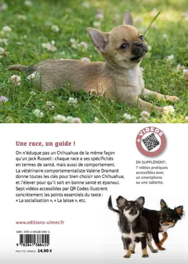 On n’éduque pas un Chihuahua de la même façon qu’un Jack Russell : chaque race a ses spécificités en termes de santé, mais aussi de comportement. La vétérinaire comportementaliste Valérie Dramard donne toutes les clés pour bien choisir son Chihuahua, et l’élever pour qu’il soit en bonne santé et épanoui. Sept vidéos accessibles par QR Codes illustrent concrètement les points essentiels du texte : « La sociabilisation », « La laisse », etc.