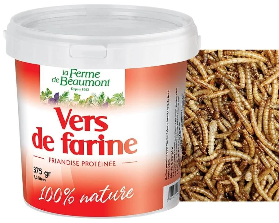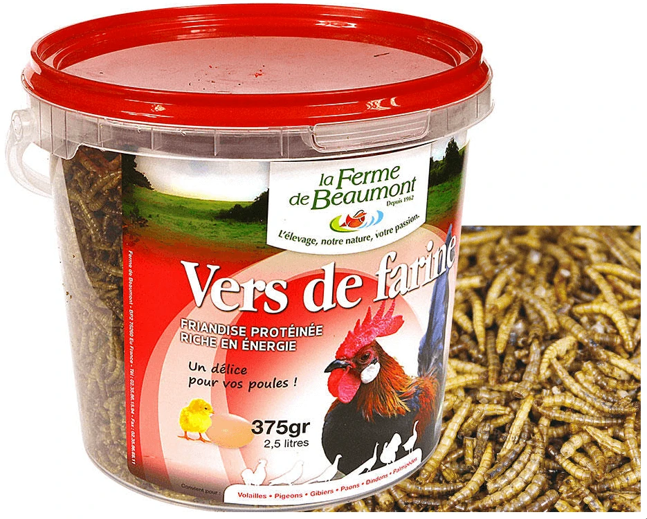 Les vers de farine déshydratés sont riches en protéines et en énergie, avant tout friandise pour vos poules mais aussi compléments pour l’élevage des jeunes.