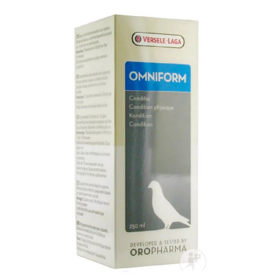 Oropharma Omniform est un aliment complĂ©mentaire pour pigeon. Il s’agit d’un mĂ©lange de vitamines et acides aminĂ©s hydrosolubles.
